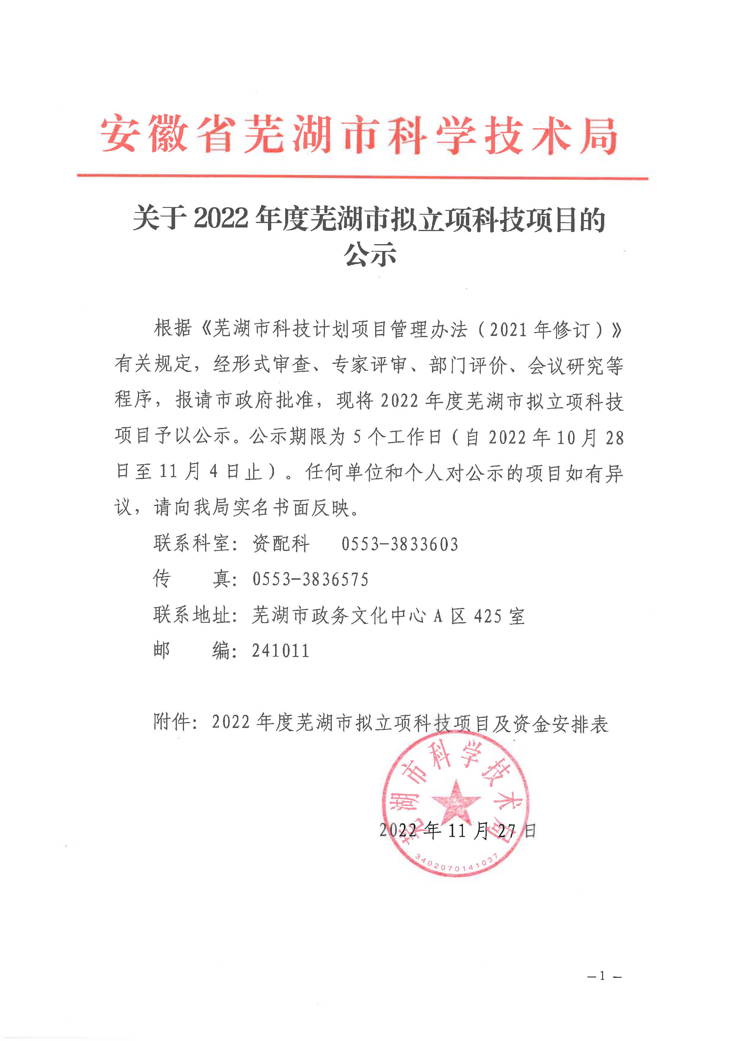 - 熱烈祝賀我公司獲2022年蕪湖市科技計劃擬立項項目