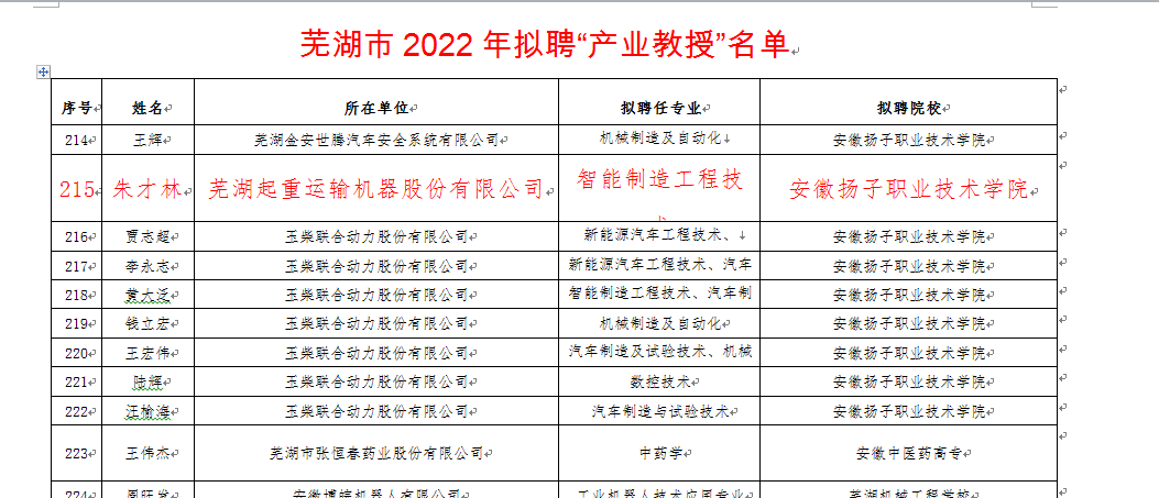- 熱烈祝賀我公司副總經理朱才林入選“蕪湖市2022年擬聘“產業教授”名單“